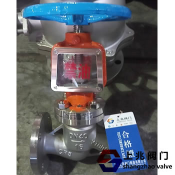 4、与普通截止阀相比,氧气管路用截止阀的支架部分采用全封闭式结构,且压紧填料时可以打开支架上的防护盖板,起到了防油防尘的作用。并有明显的禁油标记。