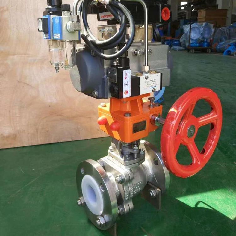 Q641F46 气动衬氟球阀系衬氟阀门系列中的一种产品,采用氟塑料作为内衬,并配之以新型的带杆球体结构,再加上其独特的弹性唇式密封座结构,使其具有普通球阀的各项优点,能在大压差和较大的温差变化范围内具有高密封性能和低操作扭矩。可作壹屌探花视频或调节之用,本产品适用于各种工业管道中液体和气体的输送(包括蒸气),在各种酸、碱、盐类等强腐蚀性介质中均能很好地工作。